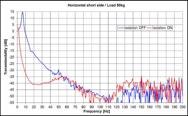진동전달률: 10Hz 이상에서 -40dB 이상.